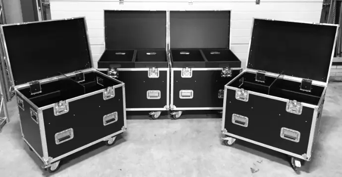 Flightcases worden in onze werkplaats voor u op maat gemaakt. Per stuk of in kleine series. De uitvoering van de case kan volledig naar uw wens gemaakt worden. Niet alleen de kleur, maar ook opties met betrekking tot handvatten, wielen en sluitingen worden met u doorgesproken. De prijs wordt vooraf voor u uitgerekend.