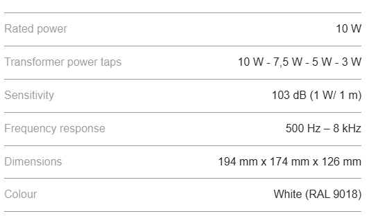 De HQ10 is een kunststof hoornluidspreker met een nominaal vermogen van 10 W en werkt in het frequentiebereik van 400 Hz tot 10 kHz. Het is een hoogwaardige hoornluidspreker, ontworpen voor gesproken woord ontruiming en omroepinstallaties. Met een gevoeligheid van 101,8 dB is de HQ10 ideaal voor lawaaiige en grote omgevingen waar een krachtige en heldere middentonenweergave vereist is.