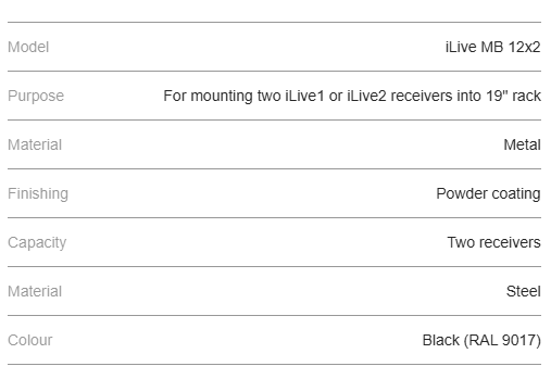 iLive MB 12x2 rackmontagebeugels voor twee iLive1- en iLive2-ontvangers.