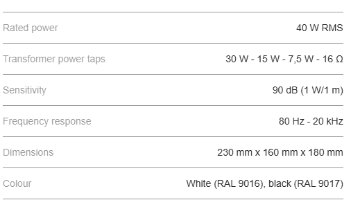 De 05-luidspreker met een perfect reagerende woofer, minimalistisch design en slimme montagebeugel. Het tweeweg luidsprekerontwerp, met een crossover en woofermembraan, levert een helder en rijk geluid op elk volume. De ingebouwde 100V-transformator en 16 Ω-stroomaftakking maken deze luidspreker geschikt voor achtergrondmuziek en omroepinstallaties, evenals voor thuisgebruik. Voel u zeker bij gebruik buitenshuis - hij heeft een IP 55-classificatie en is geschikt voor buiteninstallaties. De luidspreker kan verticaal en horizontaal worden gemonteerd, het logo kan worden gedraaid, afhankelijk van de positie van de luidspreker. De slimme montagebeugel maakt eenvoudige montage en positionering van de luidspreker mogelijk.