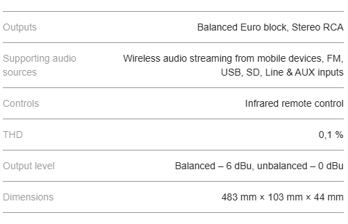 De MP 11 is een audiospeler met één zone. Hij speelt ook audio af van FM-radio, SD-kaarten en USB-sticks en ondersteunt draadloze audiostreaming vanaf mobiele apparaten. Met volume- en toonregeling en selecteerbare ingangen. De pagingmicrofoon kan worden gebruikt met microfoonversterking en toonregeling, fantoomvoeding en signaalprioriteit. Externe audiobronnen kunnen worden aangesloten via drie stereo lijningangen of een 3,5 mm TRS AUX-ingang op het voorpaneel.