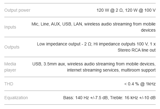 Het DMPA STREAM-apparaat is een compacte 1U half-rack PA-mixversterker/-speler met schakelende voeding en 100V-uitgangstransformator. Met ingebouwde mediaspeler om internetradio en muziek te streamen van populaire diensten zoals Spotify, Tidal en andere bronnen. De muziekspeler kan worden bediend via een app of via de bedieningselementen op het voorpaneel en ondersteunt zowel ethernet- als wifi-verbindingen.
