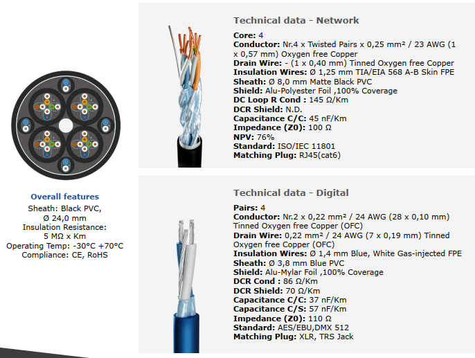 Syntax® Hybrid Cable, 4x U/FTP CAT6A + 4x Digital 2 x 0,22 mm² | 10 Gigabit Ethernet Class EA | ø 24 mm | Black