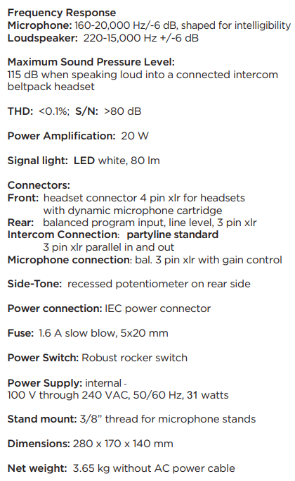 • Alle verbindingen tussen stations via standaard XLR-microfoonkabels.